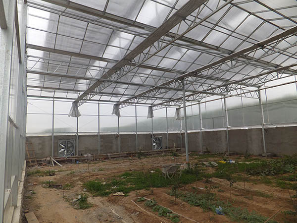 阳光板温室多为文洛型(也可以采用圆拱形),多采用一跨多顶,外形现代,结构稳定,形式美观大方,视觉流畅,保温性能卓越,透光率适中,多雨槽,大跨度,排水量大,抗风能力强,适合于风力与雨量较大地区。阳光板温室,具有透光度好,热传导系数低,由于阳光板分量轻,寿命长,拉伸强度大,通过简单的钢骨结构就能满足抗风、抗雪的要求,并且寿命长,美观大方,减少重复建设及投资,是目前替代原始的塑料薄膜温室与玻璃温室的佳选产品。