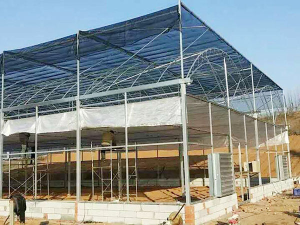 连栋温室是一种经济型温室,它以优美的弧线形和造价低倍受用户欢迎。弧形室顶美观大方,视线流畅。结构用钢量小,保温性能好。制造成本相对较低,属经济型温室,适用于我国大部分地区。北方地区多采用双层膜温室,南方地区多选用单膜温室。能在可见光0.4-0.7微米范围内得到较大光照,层膜充气后,可以形成厚厚的气囊,能有效地防止热量流失和阻止冷空气的侵入,采用双层充气膜后可大大提高温室保温性能,节省运行成本。覆盖材料顶部为聚乙烯无滴长寿膜覆盖,外层防紫外线,内层防集露;四周可以根据用户需要采用聚乙烯无滴长寿膜或聚碳酸酯中空板覆盖。