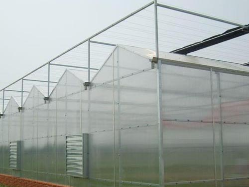 连栋温室是一种经济型温室,它以优美的弧线形和造价低倍受用户欢迎。弧形室顶美观大方,视线流畅。结构用钢量小,保温性能好。制造成本相对较低,属经济型温室,适用于我国大部分地区。北方地区多采用双层膜温室,南方地区多选用单膜温室。能在可见光0.4-0.7微米范围内得到较大光照,层膜充气后,可以形成厚厚的气囊,能有效地防止热量流失和阻止冷空气的侵入,采用双层充气膜后可大大提高温室保温性能,节省运行成本。覆盖材料顶部为聚乙烯无滴长寿膜覆盖,外层防紫外线,内层防集露;四周可以根据用户需要采用聚乙烯无滴长寿膜或聚碳酸酯中空板覆盖。