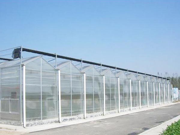 连栋温室是一种经济型温室,它以优美的弧线形和造价低倍受用户欢迎。弧形室顶美观大方,视线流畅。结构用钢量小,保温性能好。制造成本相对较低,属经济型温室,适用于我国大部分地区。北方地区多采用双层膜温室,南方地区多选用单膜温室。能在可见光0.4-0.7微米范围内得到较大光照,层膜充气后,可以形成厚厚的气囊,能有效地防止热量流失和阻止冷空气的侵入,采用双层充气膜后可大大提高温室保温性能,节省运行成本。覆盖材料顶部为聚乙烯无滴长寿膜覆盖,外层防紫外线,内层防集露;四周可以根据用户需要采用聚乙烯无滴长寿膜或聚碳酸酯中空板覆盖。